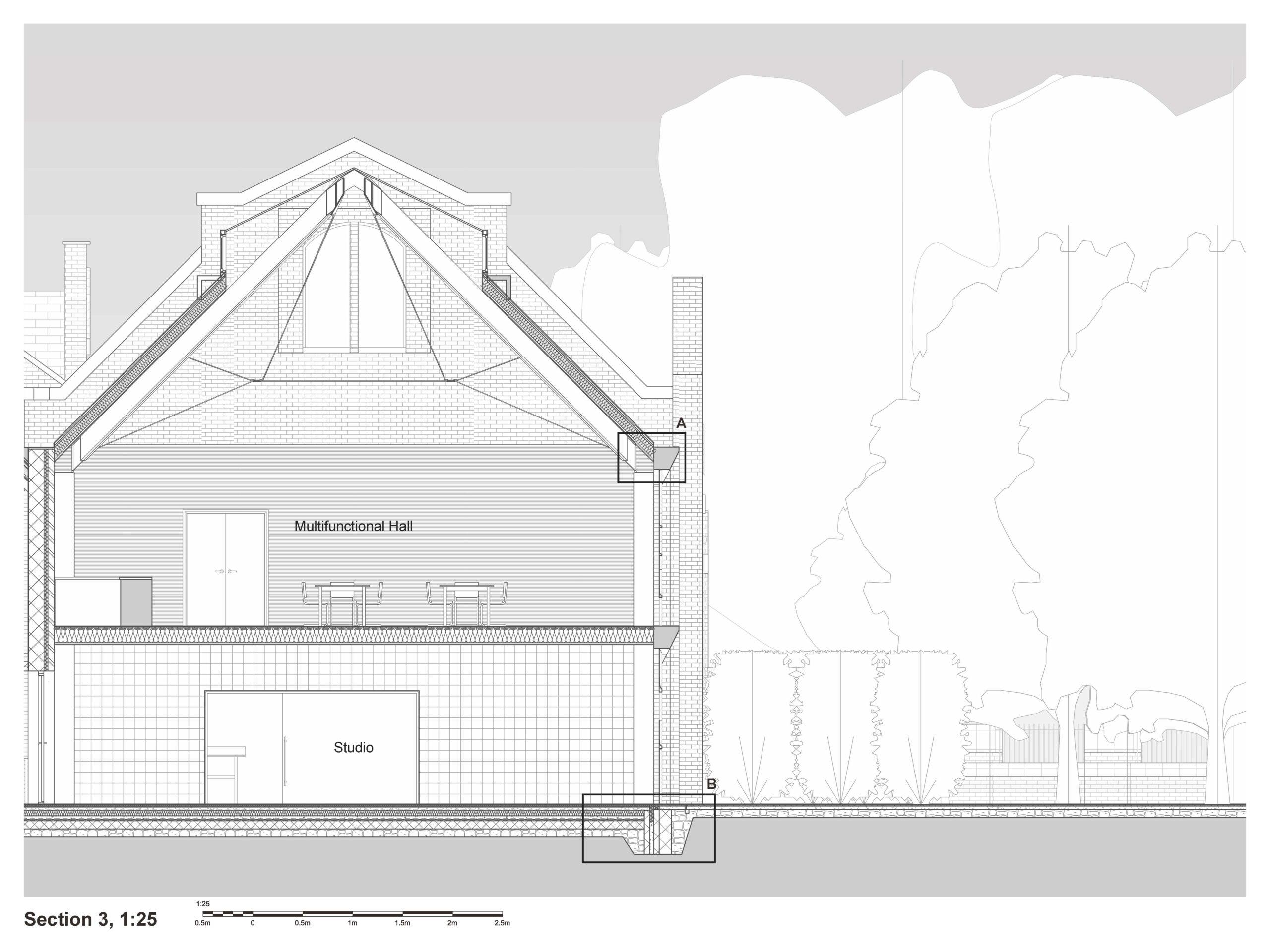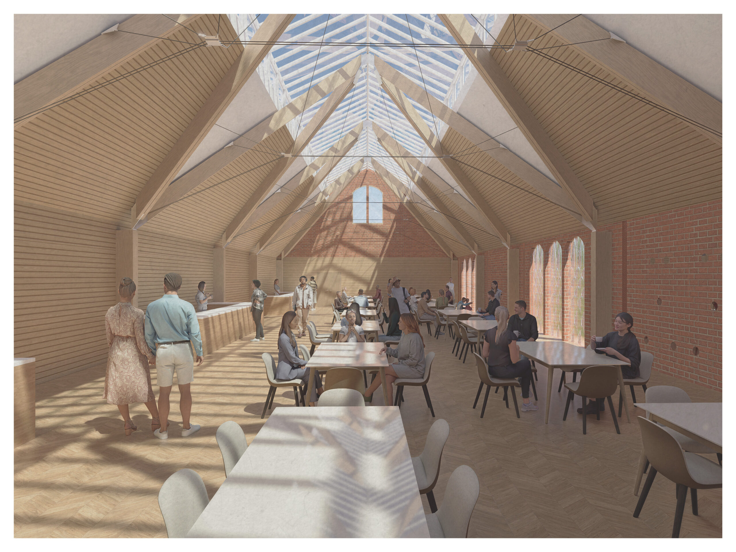 Sustainability and accessibility were paramount. The design incorporates recycled steel, reclaimed brick, and prefabricated CLT to reduce embodied carbon. Key challenges, such as a 580mm level difference, were resolved with a carefully integrated ramp, ensuring the new, versatile spaces—including a gym, yoga studio, and café—are open to all.