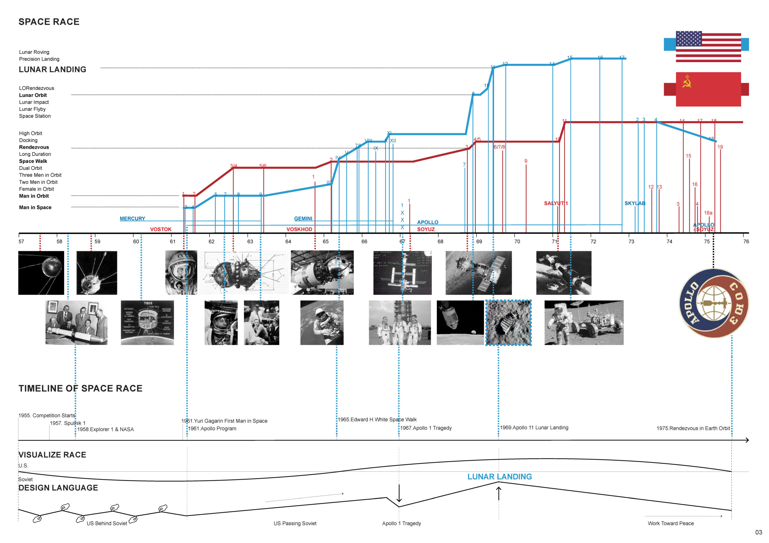 By reviewing the historical timeline of the Cold War, we chose to focus on the Space Race—an extension of the nuclear arms race that ultimately had a far greater impact on contemporary life than its original geopolitical intentions.