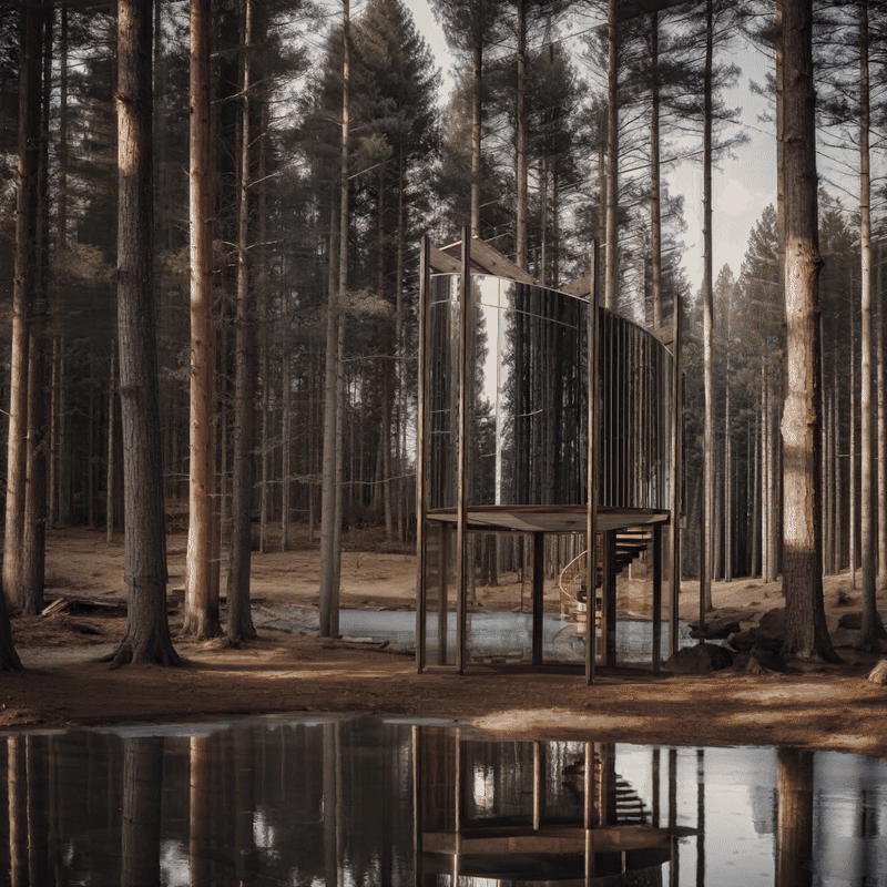 Designed to disappear into its surroundings, the cylindrical form features operable louvered panels and a reflective facade that mirrors the forest, allowing the architecture to dissolve seamlessly into the landscape. Inside, the space responds to your rhythm. Built-in, mobile, and minimal furnishings honor what’s essential—an invitation to live with less, but with greater awareness.