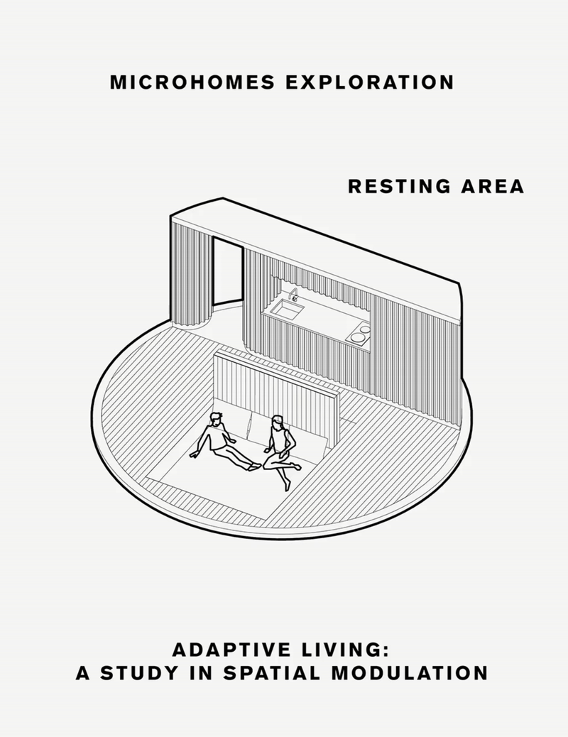 Microhome is a circular, ergonomic structure designed for autonomy and balance—with minimal land impact and a carbon-zero footprint. A single gesture transforms the space: you work, train, sleep, and think—all within a volume supported by minimal vertical elements.