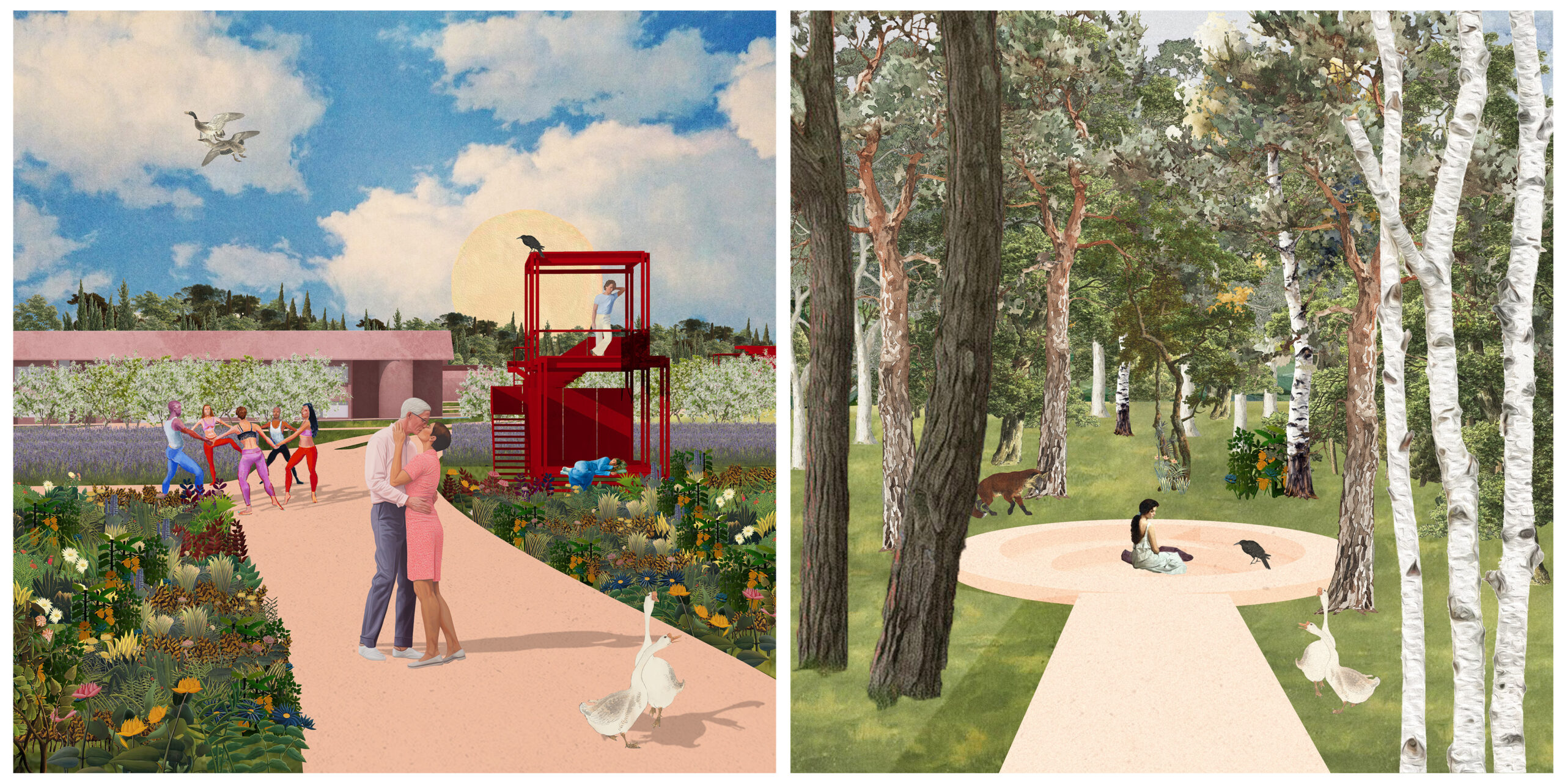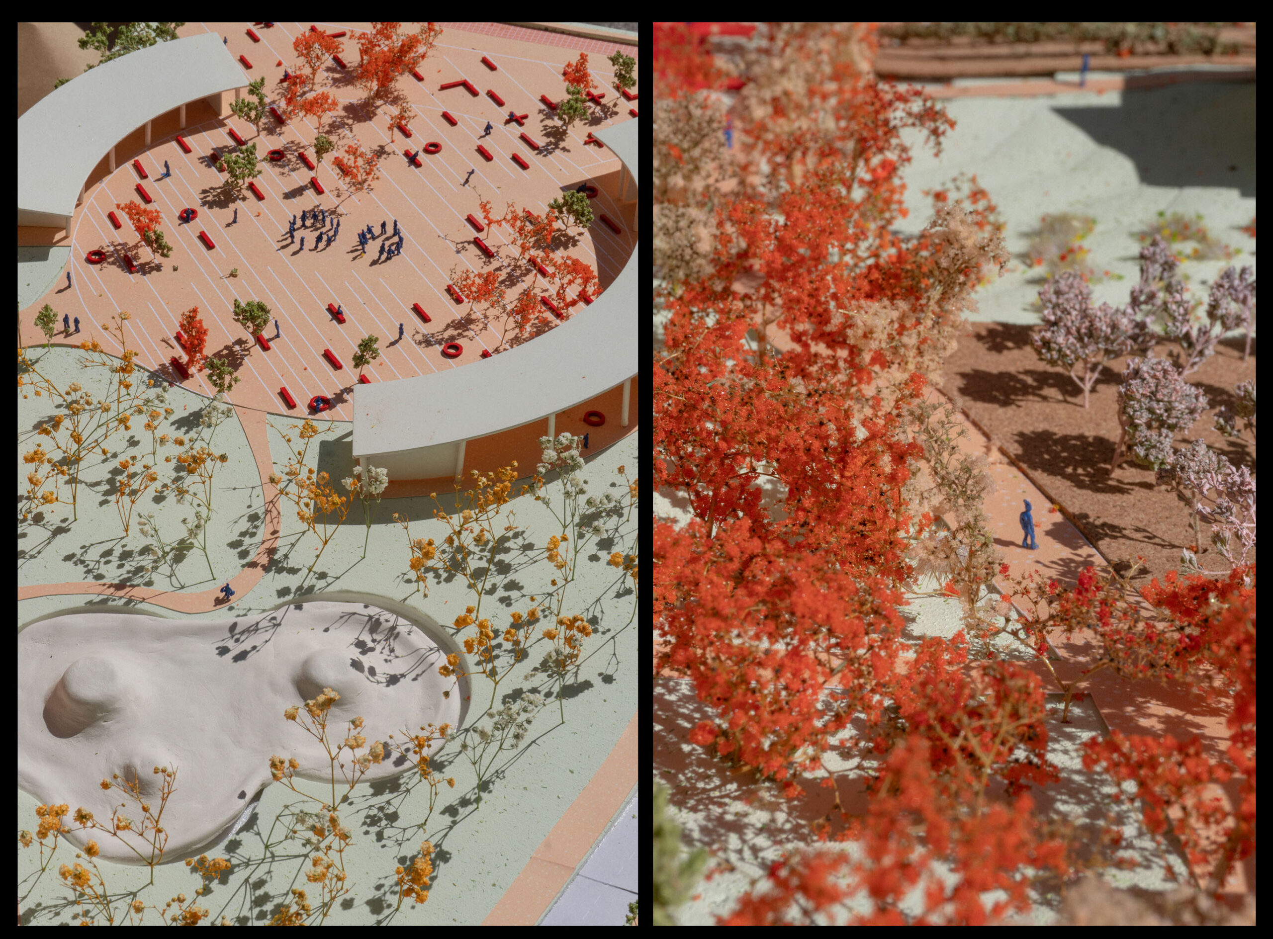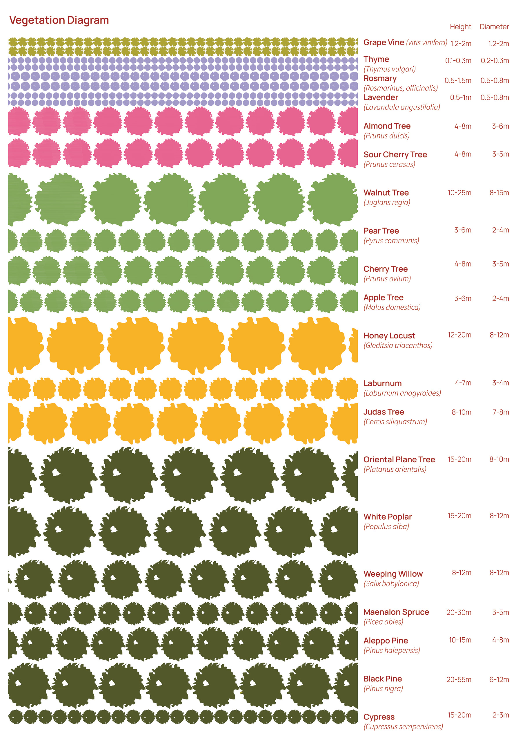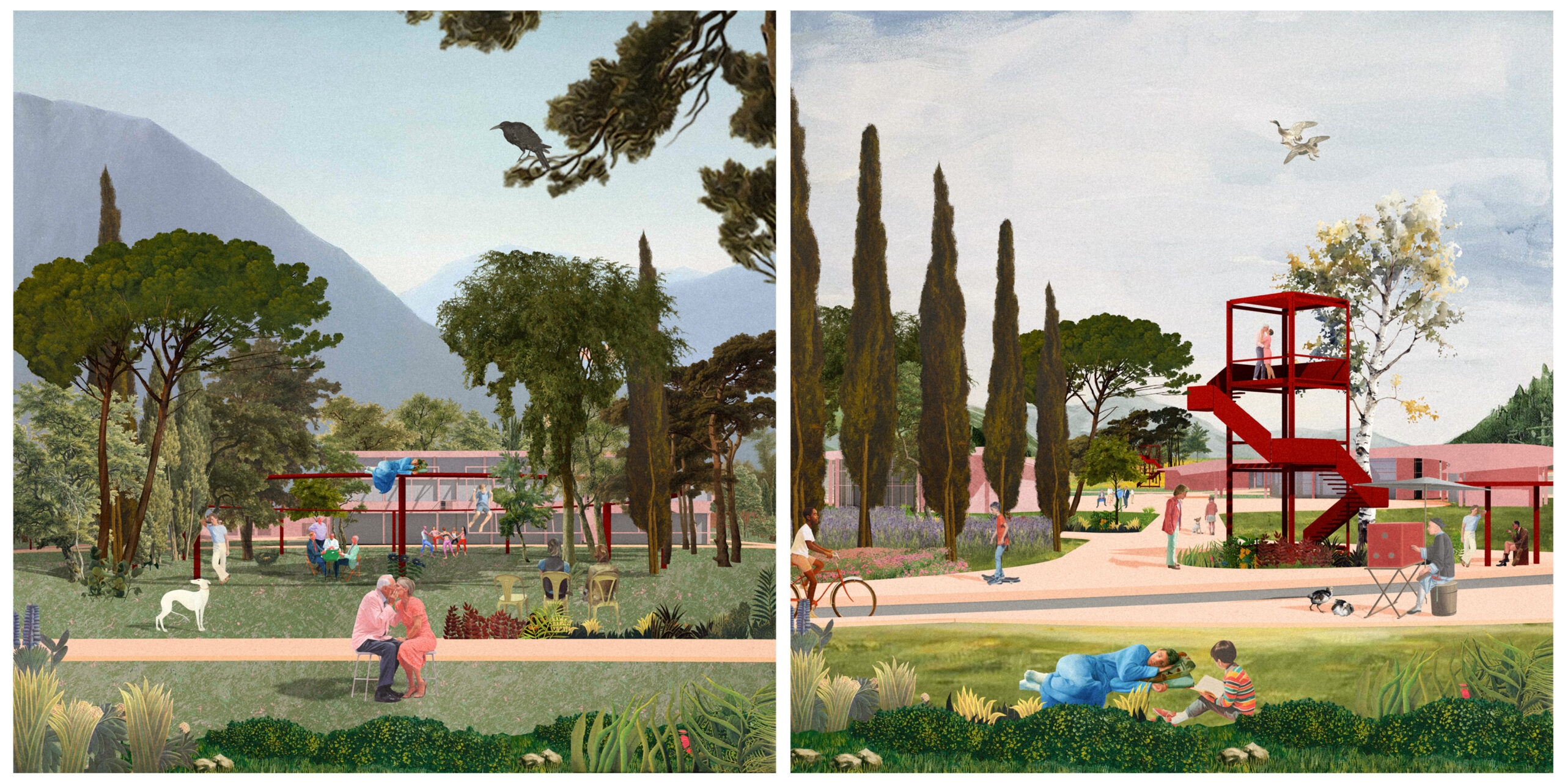 Planting constitutes a fundamental compositional component and includes tall and flowering vegetation, tree-lined paths, fruit orchards, vineyards and vegetable gardens, as well as aromatic gardens. Cultivated areas function both as a reference to the agricultural landscape and as a proposal for a university connected to the primary sector and the local economy, establishing a distinct and sustainable institutional identity.